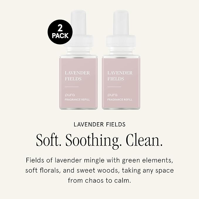 Pura Smart Home Air Diffuser Fragrance - Smart Home Scent Refill - Up to 120-Hours of Premium Fragrance per Refill - Clean Diffuser for Office & Apartment - 2 Pack, Lavender Fields