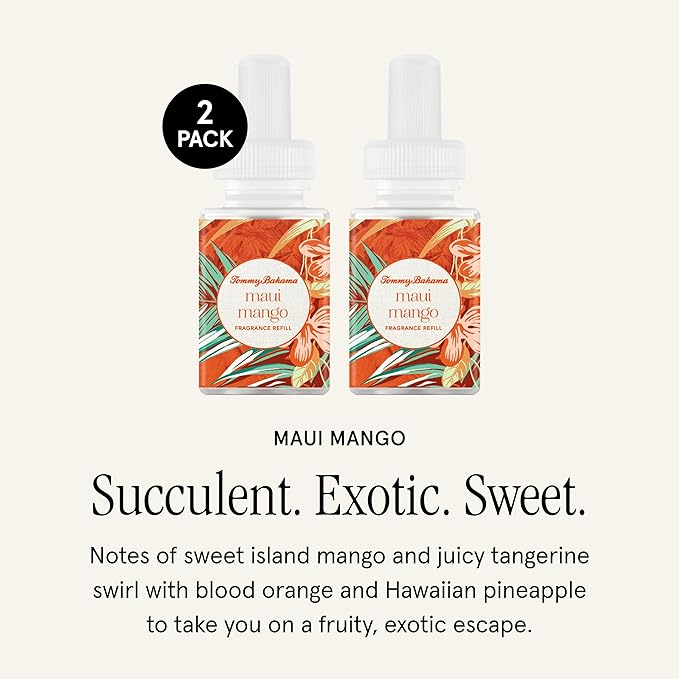 Pura & Tommy Bahama Home Scent Refill - Smart Home Air Diffuser - Up to 120-Hours of Premium Fragrance per Refill - Household Essential - Diffuser Fragrance - 2 Pack, Maui Mango