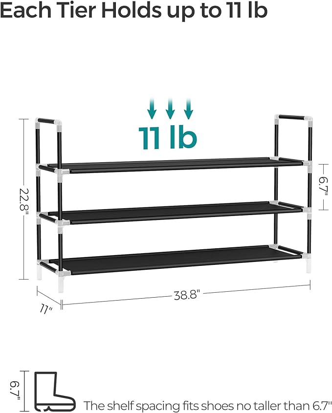 - [Space for Every Pair] With a length of 38.8'', 4-5 pairs of shoes can comfortably sit on each shelf, totaling to 12-15 pairs. The 6.7'' spacing between the shelves allows you to store any type of footwear, from sneakers to high heels