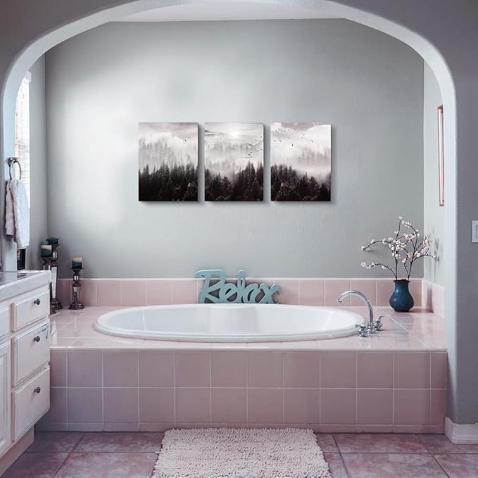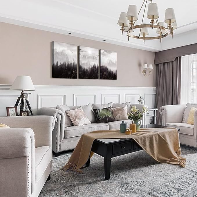 Canvas Wall Art - Boho Wall Decor for Living Room, Bedroom & Office - Foggy Forest Trees Scenery - Farmhouse Large Size 3 Piece