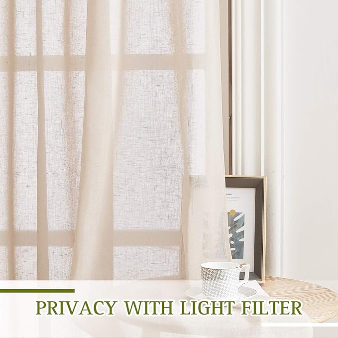 - SEMITRANSPARENT SHEER: With using the thick flax semi-sheer material, you will find the curtains will perfectly balance the light and privacy, create an airy and breathable space for your room.