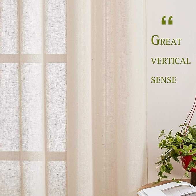 - LUXURY LINEN: The curtains adopt natural open linen weave flax sheer texture, with the linen blend, it looks more special and rich in an aesthetic feeling, perfect for vintage and casual style.