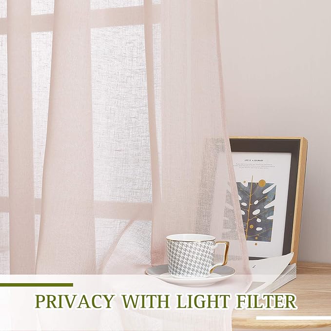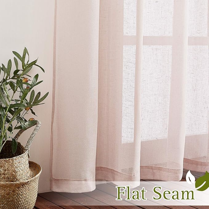 - SEMITRANSPARENT SHEER: With using the thick flax semi-sheer material, you will find the curtains will perfectly balance the light and privacy, create an airy and breathable space for your room.