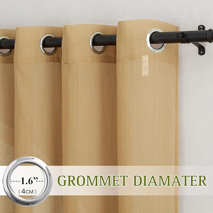 NICETOWN 45 inch Curtains Linen Sheer Textured, Grommet Semi Sheer Linen Curtains & Drapes Privacy with Light Filtering for Nursery/Kitchen, Desert Yellow, W52 x L45, 2 Panels