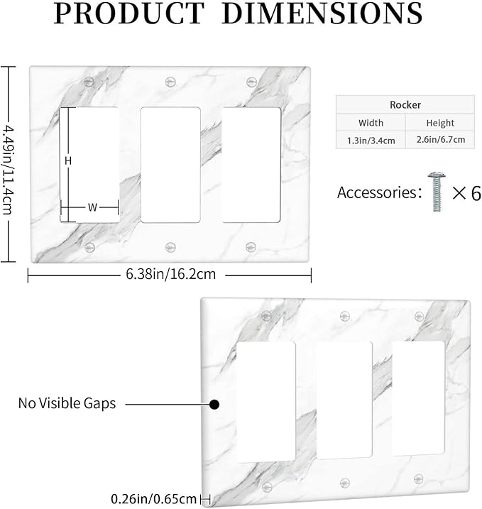 - Size:triple rocker wall plate : 4.65" x 6.57".the standard Size is easy to install on the wall grid, covering more wall defects, which makes it easy to decorate any standard switch cover and electrical socket.