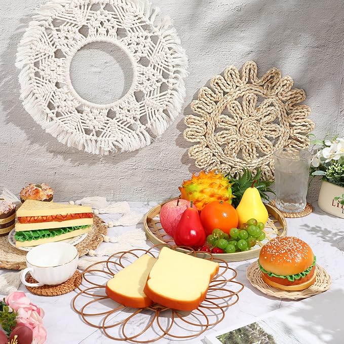 - Set of 8: you will receive 8 pieces of Boho wall basket decors in 7 different designs with the theme of Boho style, such as macrame tassels wall tapestry, rattan coasters, bamboo wall basket, seagrass woven hanging, flower shaped wall decor, etc., which can bring a stylish and modern feeling to the room, well matched to your home and furniture style; Sufficient quantity and rich designs allow you to hang them together or individually at different places