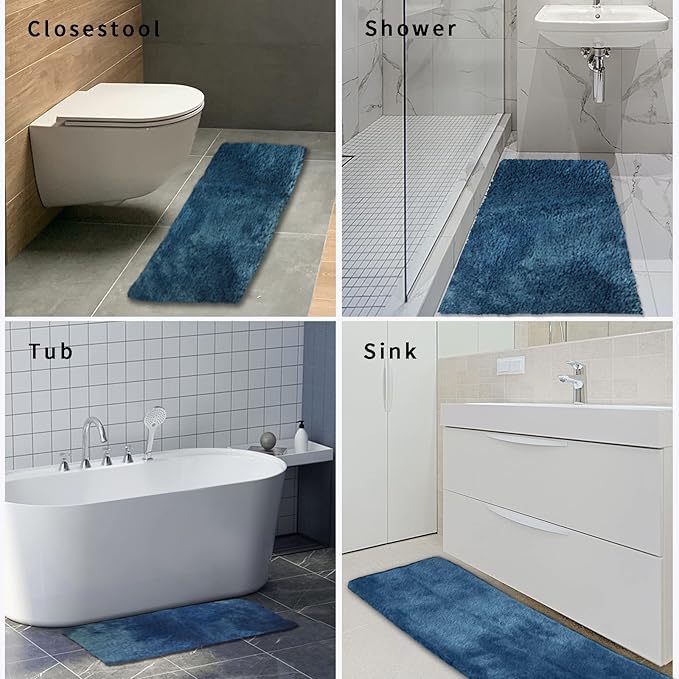 FIFU Bathroom Runner Rug 24" W x 48" L, Bath Mats for Bathroom, Bedroom & Kitchen, Non-Slip Rubber Latex Backing, Comfort & Soft Shower Bathmat & Carpet for Sink, Home & Hallways, Peacock Blue