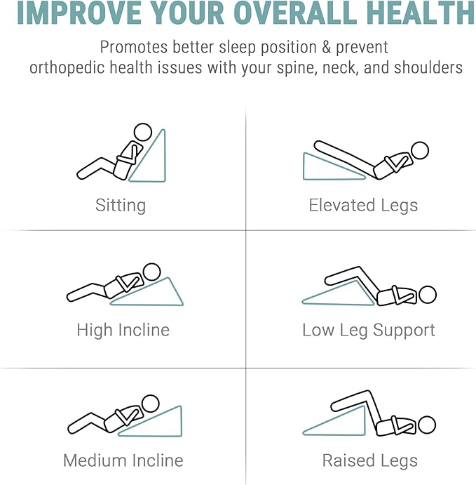 - Multi-Purpose: Rest up in comfort with the pillow as a body positioner, with many different ways of use. The wedge pillow keep you comfortable while reading, working on a laptop, or watching tv in bed. It's also ideal for elevating the legs for increased circulation and varicose vein relief.