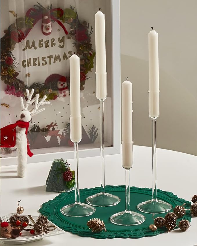 - Willceka glass candle holder set is made of premium borosilicate glass, clear and tough. All in good packaging for your easy storage. Display it on a shelf as is and place as a centerpiece at your next dinner party