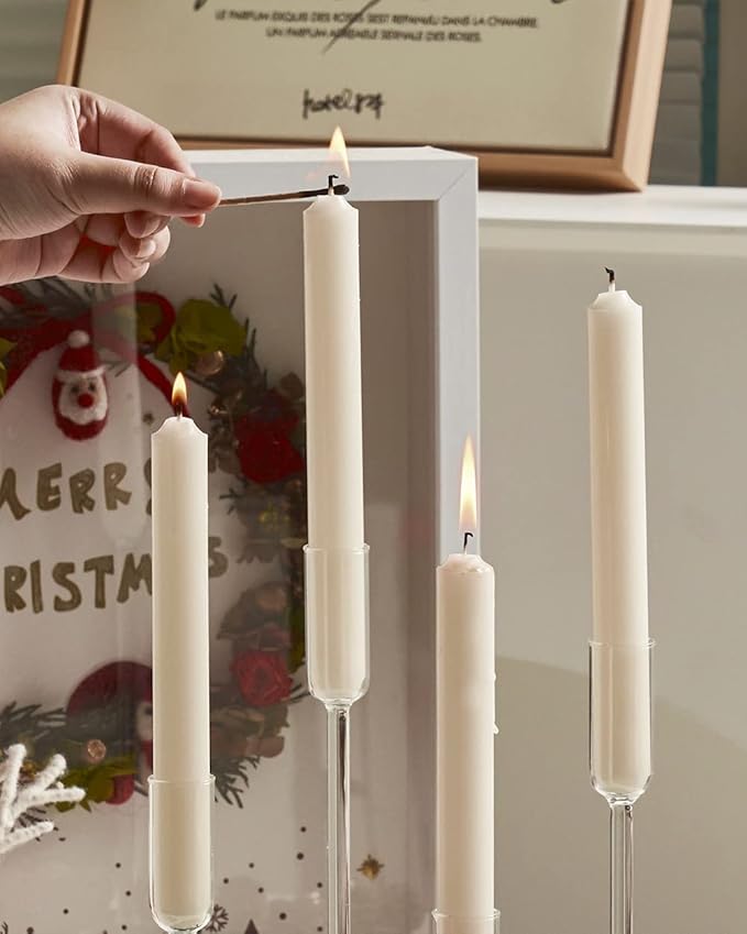 Candle Holder, Glass Taper Candle Tall Candlestick Holder, 4 Different Heights, for Table Centerpiece, Wedding, Party, Clear, 8pcs
