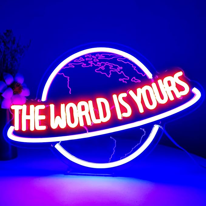 - Top Craftsmanship: Each The World Is Yours led sign light is made of high-grade acrylic and flex neon light. Built to last with 100,000+ hrs Lifespan. Super bright and gorgeous from all angles.