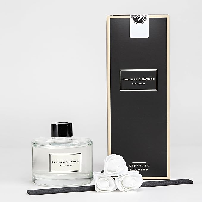 CULTURE & NATURE Reed Diffuser Set 6.7oz (200ml) White Rose Scented Diffuser with Sticks Home Fragrance Reed Diffuser for Bathroom Shelf Decor