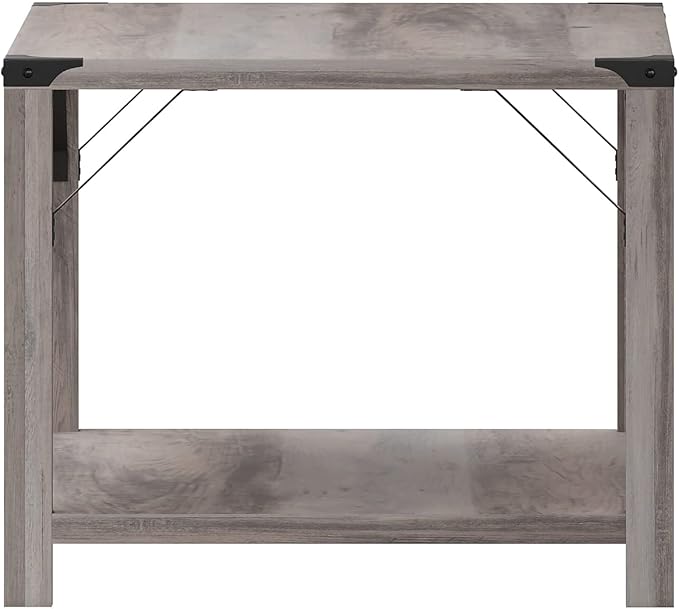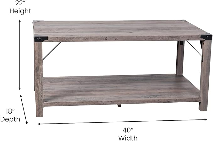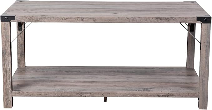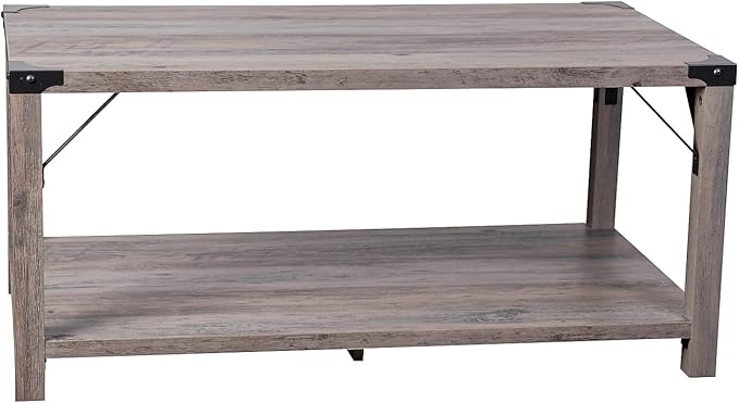 Flash Furniture Wyatt Modern Farmhouse 2 Tier Coffee Table - Gray Wash Engineered Wood Frame - Black Metal Crisscross Side Braces and Corner Accents