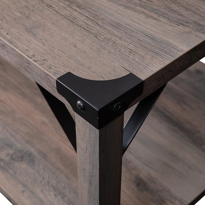 - SIMPLE BUT ELEGANT: Rustic farmhouse style coffee table in a wood grain finish with metal accents adds charm and sophistication to any space