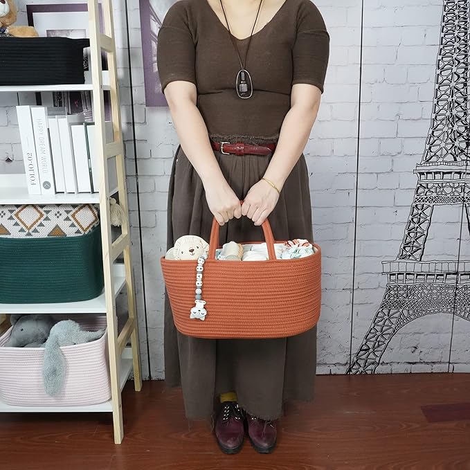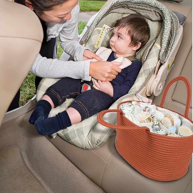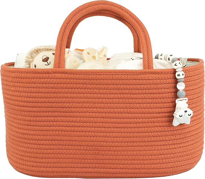 Large Baby Diaper Caddy Organizer for Girl Boy Rope Nursery Storage Bin Basket Portable Holder Tote Bag for Changing Table Car Travel Baby Shower Gifts Registry Must Haves Rustic