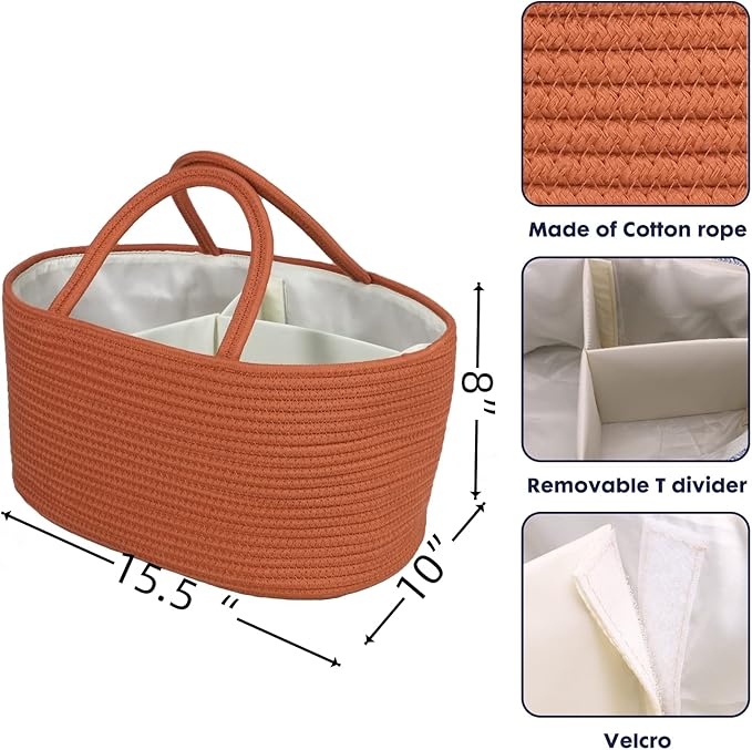 - Versatile baby organizer for newborn products: XUANGUO diaper holder is perfect for your changing station as changing table organizer, baby organization or anywhere in your home. This baby storage caddy or diaper basket is portable with sturdy handles, easy to carry. The removable divider can be easily taken out and use it as baby hamper, baby bath caddy or nursery basket for additional nursery storage. Gender neutral solid color compliments any nursery decor.