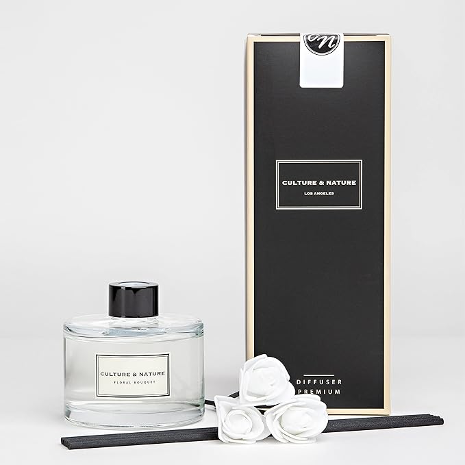 CULTURE & NATURE Reed Diffuser Set 6.7oz (200ml) Floral Bouquet Scented Diffuser with Sticks Home Fragrance Reed Diffuser for Bathroom Shelf Decor
