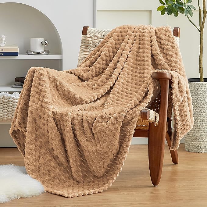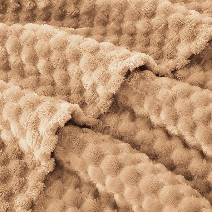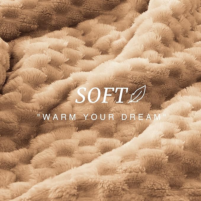 EXQ Home Fleece Throw Blanket for Couch or Bed - 3D Imitation Turtle Shell Jacquard Decorative Blankets - Cozy Soft Lightweight Fuzzy Flannel Blanket Suitable for All Seasons(50"×60",Camel)
