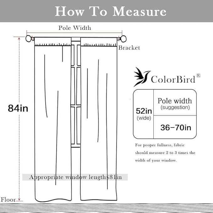 - Size & Header Type - 2 panels per package, each off white linen curtains measure 52" wide x 84" length. Rod pocket curtains have a sewn-in pocket that slides easily onto your curtain rod for quick installation