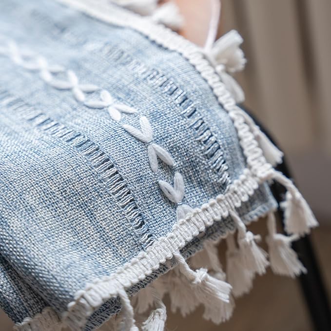 ColorBird Boho Curtains for Living Room, 2 Panels 63 inch Blue Darkening Drapes, Embroidered Striped Farmhouse Sliding Door Vintage Bohemian Curtain for Bedroom