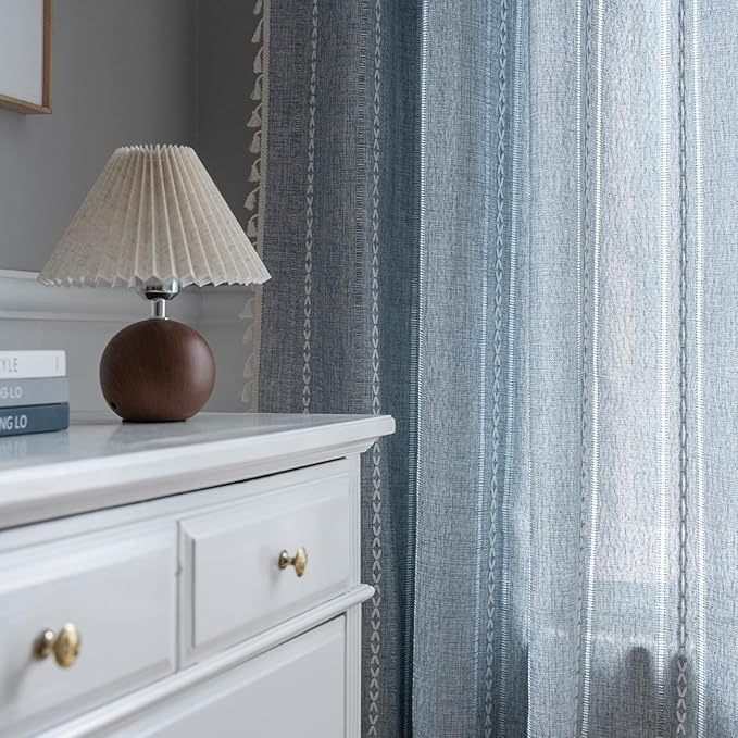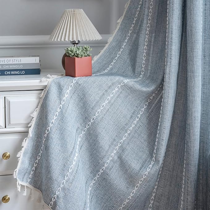 - Privacy & Relax - A semi opacity and blue stripe bring some lights in but still protact privacy for these bohemian curtains, enjoy a cosy atmosphere in home