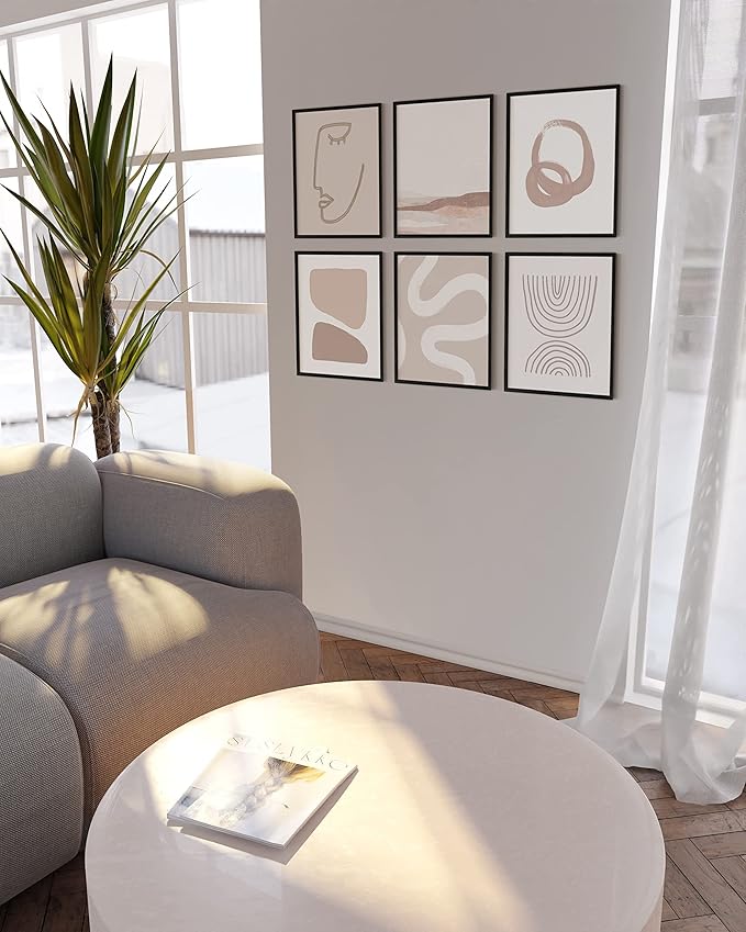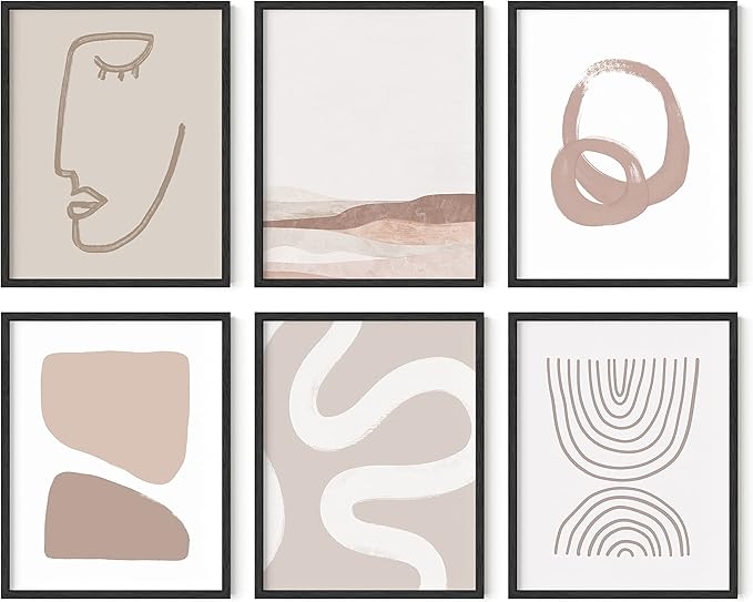 HAUS AND HUES Frameable Beige Boho Art Wall Decor - Set of 6 Neutral Mid Century Modern Wall Art, Minimalist Wall Art, Neutral Wall Decor, Beige Boho Posters for Room Aesthetic (Unframed 11x14)