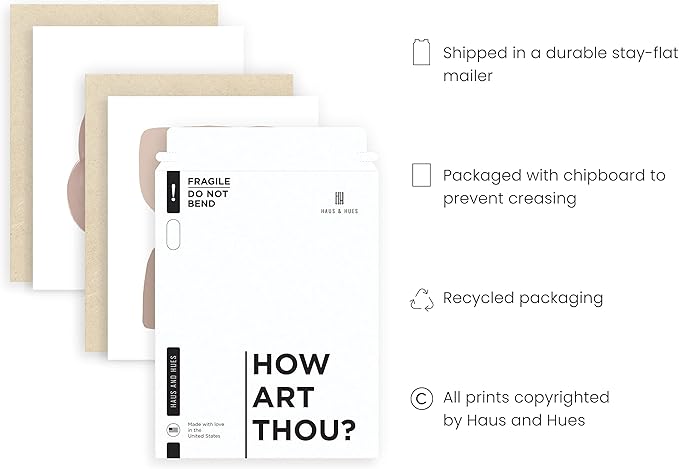 - MADE IN THE USA: To achieve the quality we’re known for, we use a giclée printing technique on 14 pt semi-gloss paper. The recycled paper used for our abstract art wall decor is sustainably-sourced in the US, and our inks are water-based and toxic-free. Boho pictures are shipped in a durable mailer to protect the artwork while in transit. Chipboard pads in the packaging prevent any creases and dents so your contemporary wall art arrives in perfect condition.
