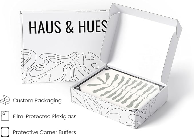 - PREMIUM WALL ART: To achieve the craftsmanship we’re known for, we use a printing technique on 8.5pt coated poster paper. The paper used for our boho prints is sustainably sourced, and our inks are water-based. The neutral wall art is equipped with plexiglass covered by protective film and two metal hangers for horizontal or vertical hanging. The artwork set is shipped in a durable box for protection in transit.