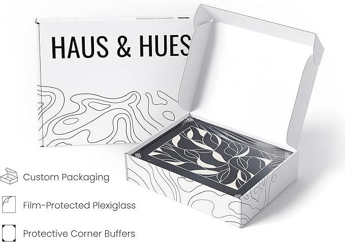 - PREMIUM WALL ART: To achieve the craftsmanship we’re known for, we use a printing technique on 14 pt semi-gloss paper. The paper used for our neutral wall art and mid century art is sustainably sourced, and our inks are water-based. The neutral decor is equipped with plexiglass covered by protective film and two metal hangers for horizontal or vertical hanging. The neutral wall decor is shipped in a durable box for protection in transit.