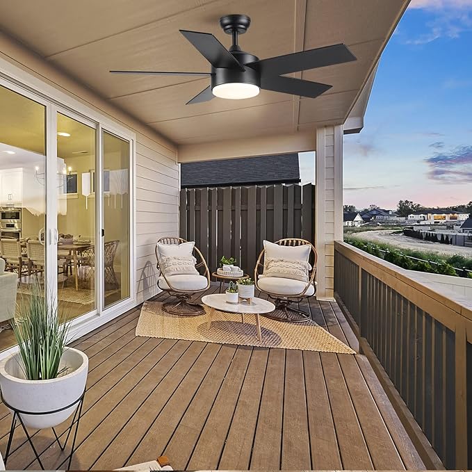 - CEILING FAN WITH LIGHTS : This 44 inch ceiling fan has 24W dimmable LED lights. LED can adjust brightness(0%-100%), and can change three color temperature (3000K warm light-4000K natural light-6500K cool light), you can adjust the atmosphere of your room according to your needs. And 3-speed motor delivers different airflow to meet your demand.