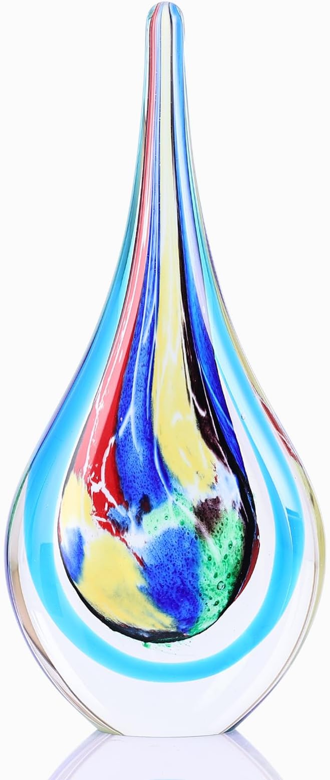 DOVDOV Blown Glass Sculpture, Stained Glass Art Teardrop Statue, Unique Ocean Theme Decoration for Office, Bookshelf, Dresser, Living Room Coffee Table, Fireplace countertop Decoration.