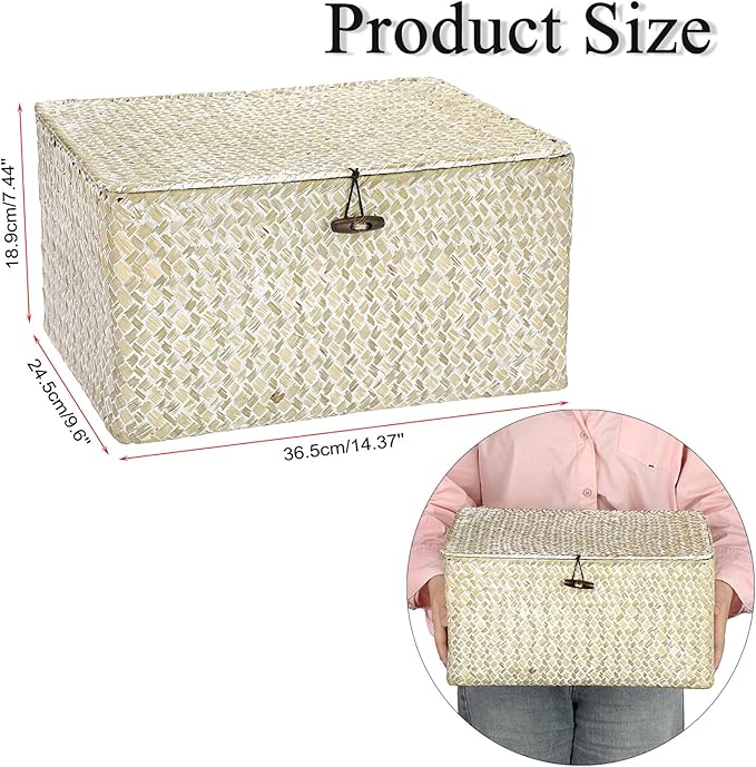 - Product Info - Size (L*W*H) :14.3" x9.6"x7.4", Package Included: 1 x Large Handwoven Basket Box (Accessories are not included)