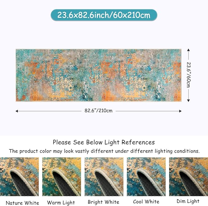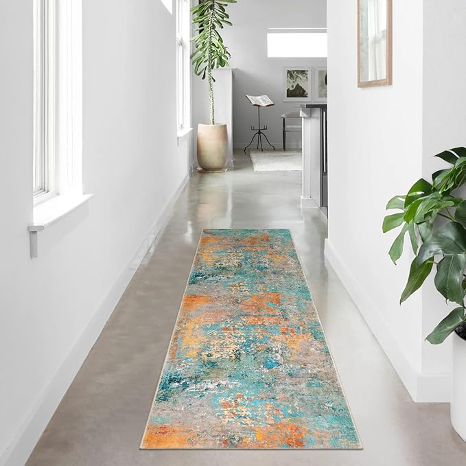 - [Modern Abstract Area Rug] - Add a pop of color for you home with this area rug. Designed with delicate palette, this collection impresses with an abstract print with splashes of blue, orange, yellow, and gray hues. It looks like a sunset, gives people a relaxing feeling, suitable for modern industrial and contemporary homes.