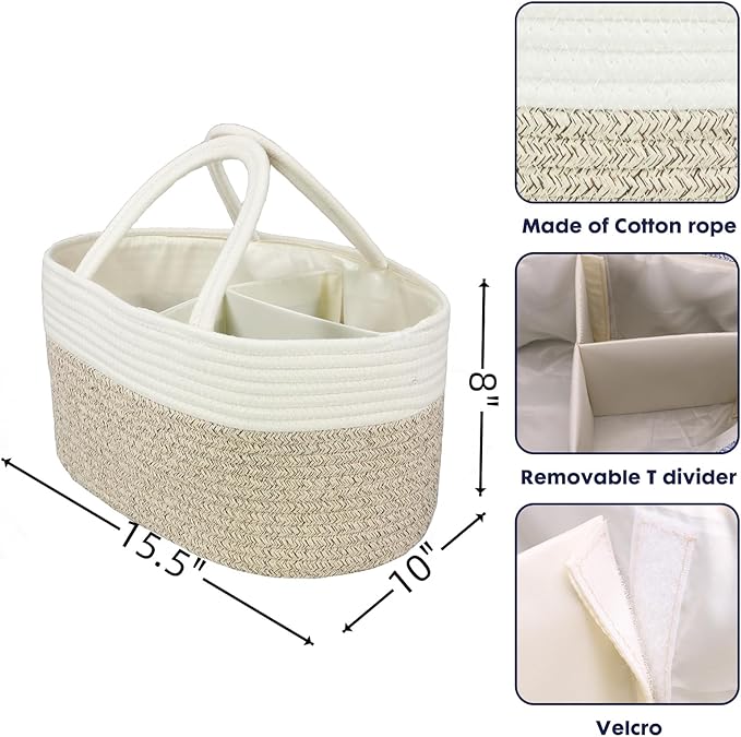 - Versatile baby organizer for newborn products: XUANGUO diaper holder is perfect for your changing station as changing table organizer, baby organization or anywhere in your home. This baby storage caddy or diaper basket is portable with sturdy handles, easy to carry. The removable divider can be easily taken out and use it as baby hamper, baby bath caddy or nursery basket for additional nursery storage. Gender neutral solid color compliments any nursery decor.