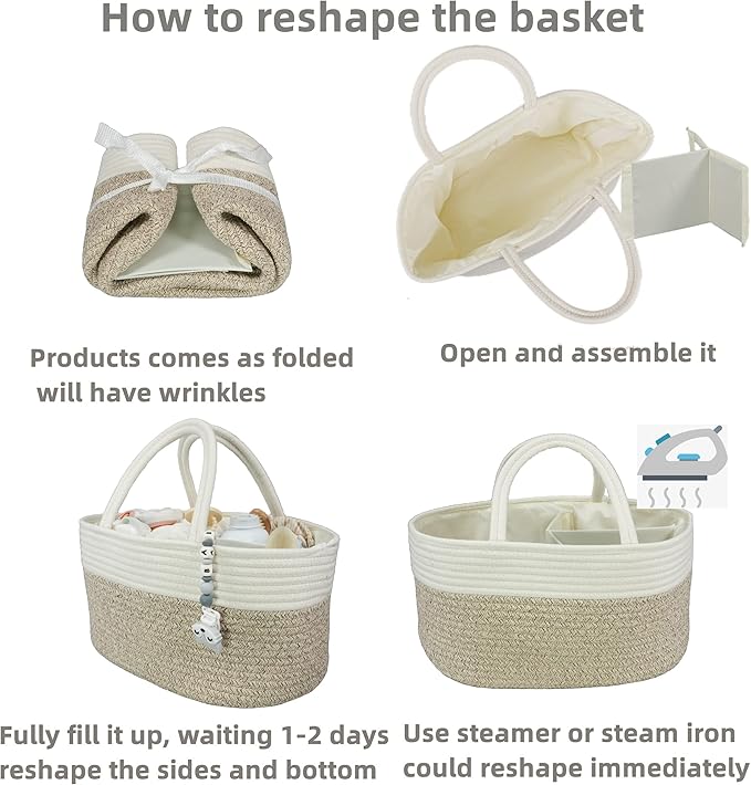 - Great Baby Gifts: This unisex diaper basket organizer is a perfect Newborn gifts as it Looks perfect on dresser top, next to diaper pail, bedside, crib and etc. This diaper basket caddy is not only beautiful but also practical. Could fill it with diapers, wipes or anything else new baby stuff as gift basket. Baby caddy is one of newborn must have items.