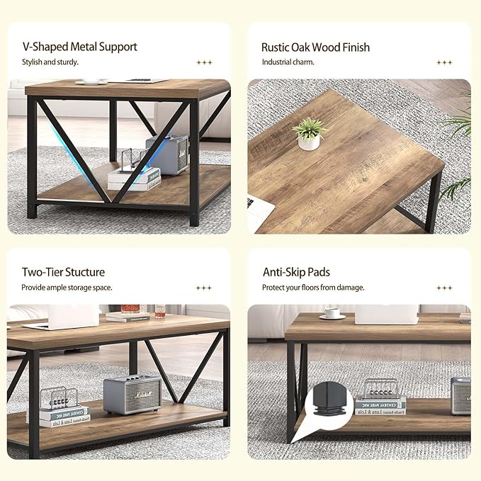 - Simple Coffee Table: This modern coffee table features simple, clean lines that give it a minimalist and modern look. The rustic oak wood grain surface adds a touch of warmth and charm, making it versatile enough to be used in living rooms, offices, or bedrooms as a coffee table, tea table, or cocktail table.