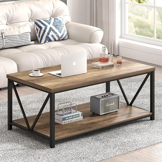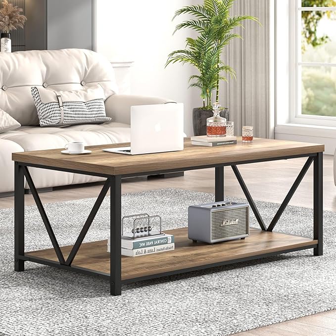 - Ample Storage Space: With an open, two-tier design, this rectangle center table provides ample storage space. The lower shelf is perfect for books, magazines, or other frequently used items, while the upper shelf is suitable for coffee cups, remote controls, and decor.