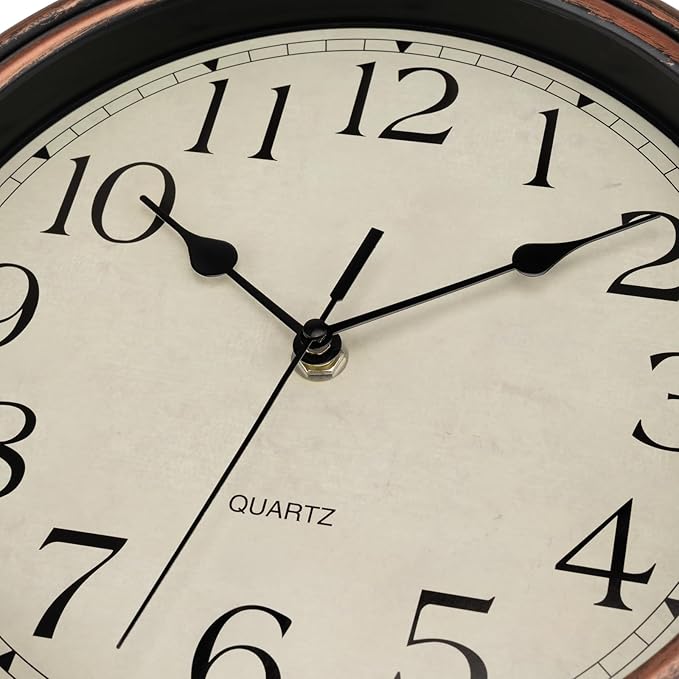 Foxtop Vintage Copper Wall Clock 12 Inch Silent Non Ticking Battery Operated Quartz Round Retro Wall Clock Decorative for Kitchen Bedroom Living Room Office Classroom