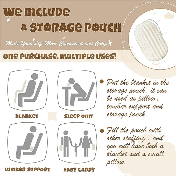 Bnuitland Ivory Flannel Throw with Storage Pouch,300GSM Super Soft Fleece Stripe Pattern Sofa Blanket for Adults and Kids, Lightweight Cozy Bed Throw for Home Decor All Season