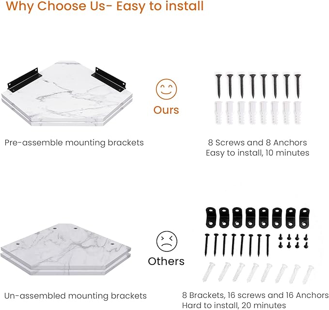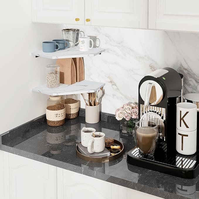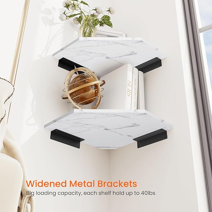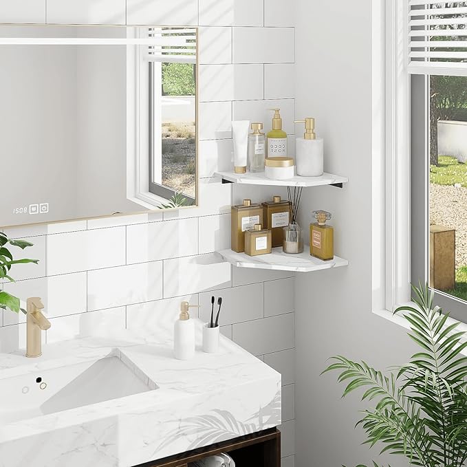- STYLISH & ELEGANT: Crafted from premium particleboard, the corner wall shelves create a modern and clean look, match with any of your decor and perfect for organizing everything, enhance vintage aesthetic for your space