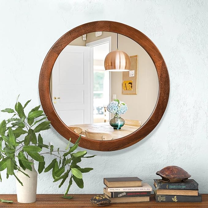 - [EASY TO HANG]The wooden wall round mirror is easy to be installed within minutes. It comes with D-ring hook on the back.To be sure it securely attached on the back.