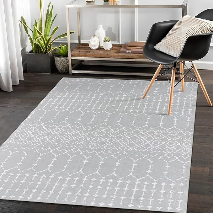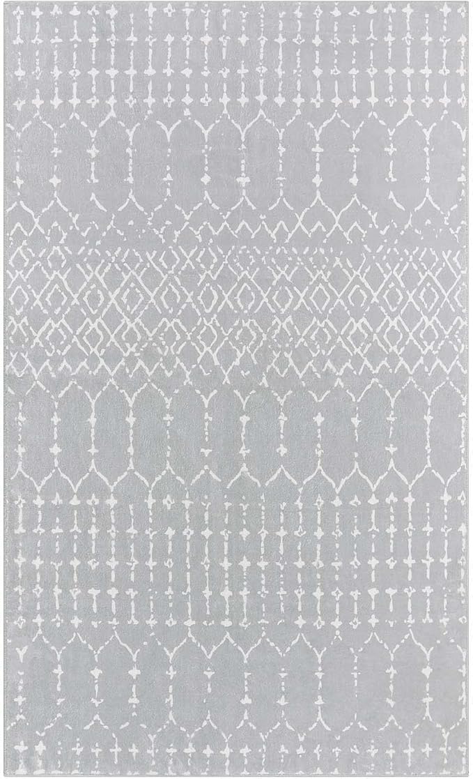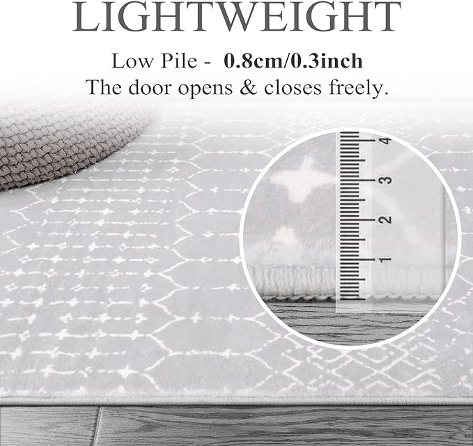 Lahome Moroccan Washable Living Room Area Rug - 3x5 Small Rugs for Bedroom Throw Non-Slip Low-Pile Entryway Rug Kitchen Rugs Soft Grey Distressed Capet for Office Bathroom Laundry Room Dining Room
