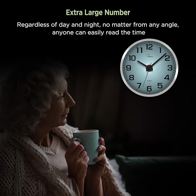 - Excellent Wall Clock for Bedroom - This wall clock comes with a hook that you can hang anywhere you want, very easy to use. The smart light could help you read time at night in bedroom, and the appropriate brightness won't hurt your eyes.