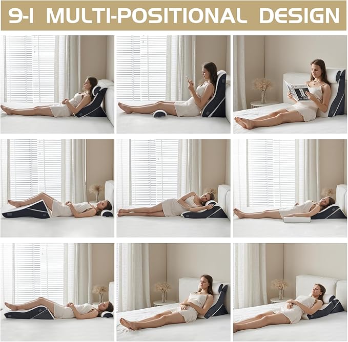 - THE NEWLY DESIGNED 3-PIECE WEDGE SYSTEM: The most advanced & developed wedge pillow set with an ergonomic curve design. Perfect for providing you with an exceptionally comfortable posture when reading, surfing the Internet, during pregnancy, during deep sleep, and during leg discomfort.