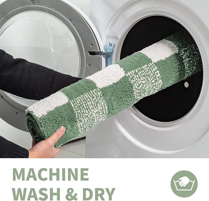 CozeCube Checkered Bath mats for Bathroom Non Slip, Fluffy Absorbent Microfiber Bath mat Washable, Aesthetic Bathroom Rugs, Cute Bath mat for Shower Sink, Sage Green, 32" x 20"