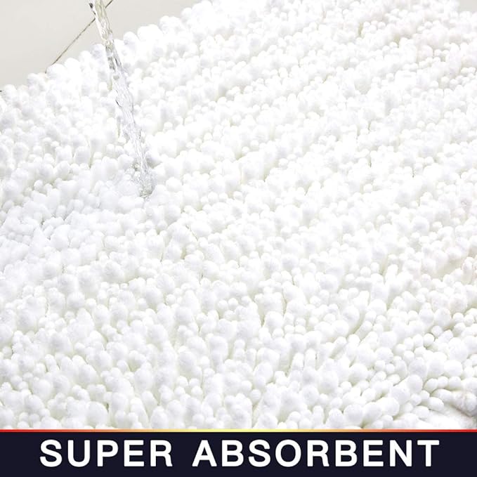 Walensee Bathroom Rug 2 Pieces Set Non Slip Bath Mat (20"x32" Plus 20"x32" White) Water Absorbent Super Soft Shaggy Chenille Machine Washable Dry Extra Thick Perfect Carpet for Shower Floor