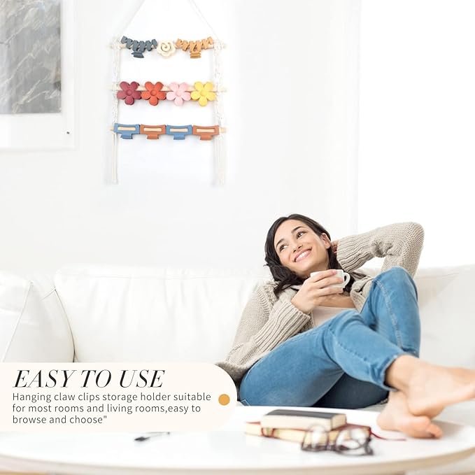 - Convenient to Assemble:The unique and customized construction of the hair claw clips organizer is easy and convenient to assemble, hang and pick your claw clips. Just hang the double rope on the door, wall, cabinet and it's ready to use.
