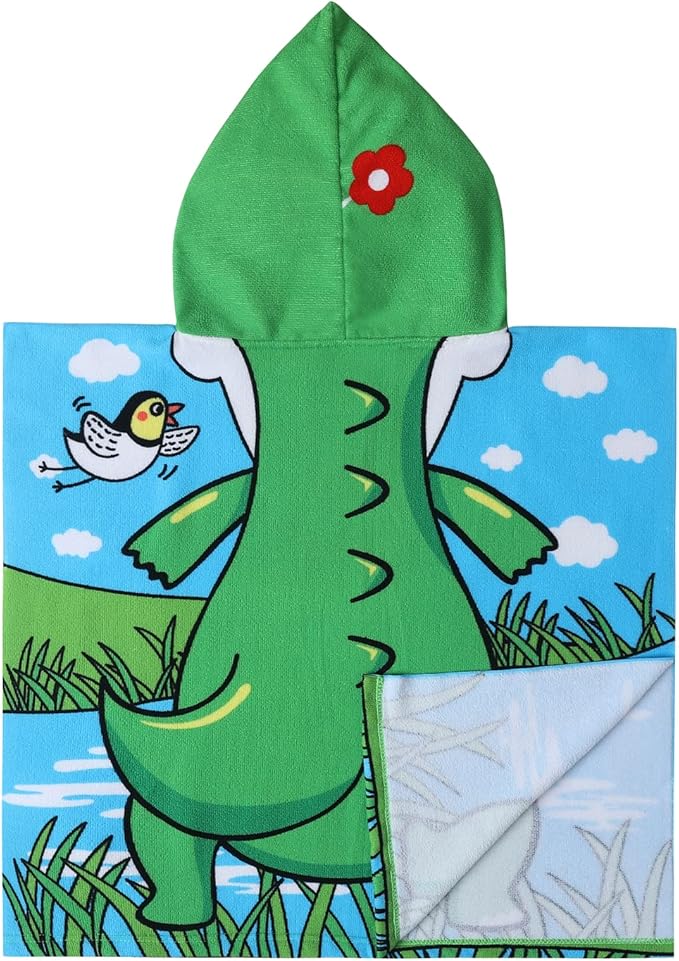 Kids Towels with Hood for Bath Beach Pool Toddler Hooded Towel Poncho Swim Cover-ups with Drawstring Bag (Alligator)
