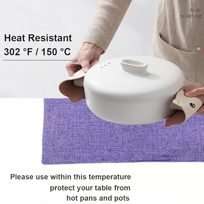 Weabetfu Cloth Placemats Set of 6 Heat Resistant Dining Table Placemmats Cotton Linen Machine Washable Kitchen Table Mats Wrinkle Free Thick Fabric Place Mat,Easy to Clean,13"x19" Purple