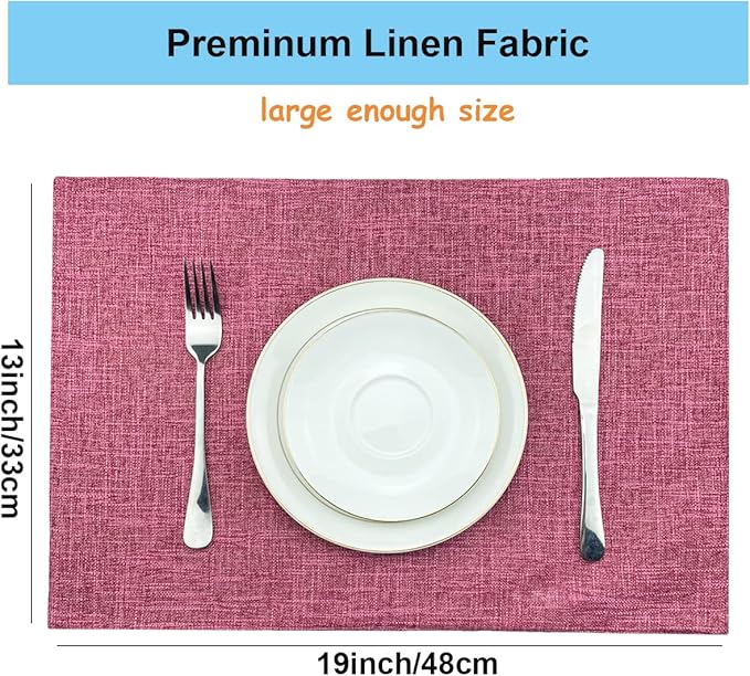 - Great table decor Kitchen Accessories rustic placemats.Classy placemats are made from premium cotton and linen blend,the table mat has a rustic looking and will give a warm feeling to the dining table whatever at casual or formal setting.Non-fading,Non-slip,Durable,Double Layered fabric,Super thick